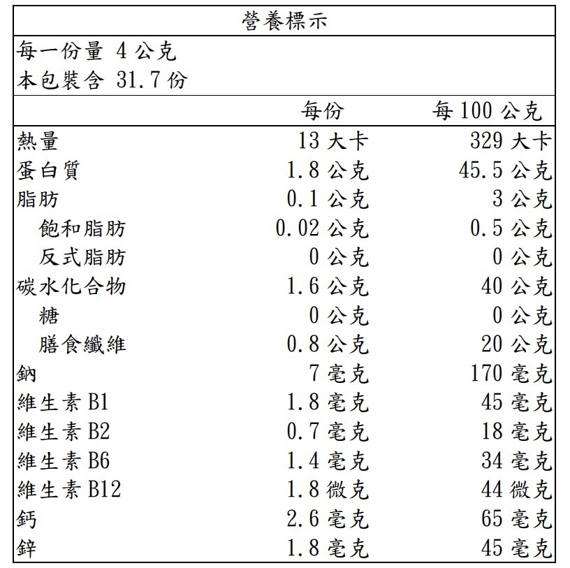 營養酵母是天然維生素B群及優良蛋白質,可以被人體完全利用吸收,幫助消化增強體力適合一般大眾營養補充品.
